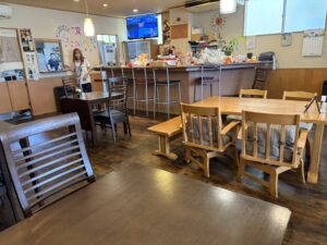 店内はけっこう広々としていて、高いカウンター席もありますが、基本4人がけのテーブル席ですね。ザ的にちょっと低いかな(*´ω`*)