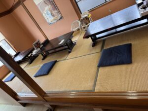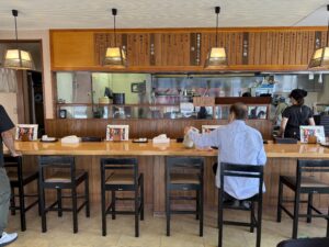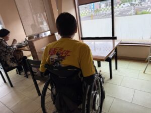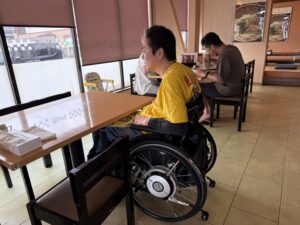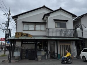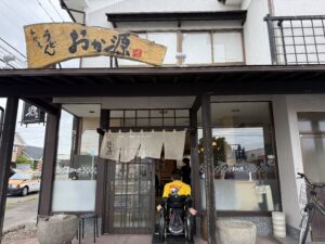 入口はフラット。店内は少し高めのカウンターとテーブル席。お座敷もありますね♪けっこう広々としているので、大きめの車いすでも楽に行けそうです!