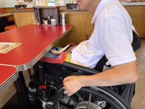入口に段差はなく店内も広め。テーブル席が多いので車いすでもゆったりお食事できます♪
