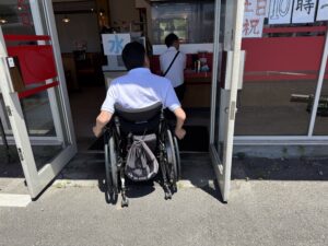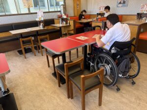 入口に段差はなく店内も広め。テーブル席が多いので車いすでもゆったりお食事できます♪