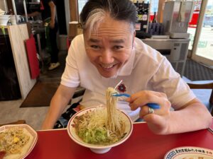 今回はチャーシュー麺とネギラーメン、半チャーハンと餃子をチョイス。としたいとこでしたが、さすがにこの肉の量はザ的にも致死量!この日のバディもキツいとのことでチャーシュー半分とイモ引き(笑)