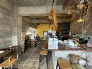 店内はコンクリート造りでレトロな雰囲気の椅子とテーブルがあってめっちゃおしゃれ!!