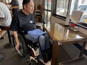 入口は段差なし!といってもいいでしょう!店内はやや高めのカウンターとお座敷。可愛らしいテーブルがいっこだけあります^^;