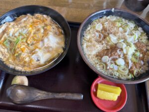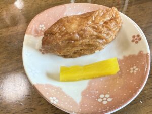 今回はその中から、玉子丼のセット、肉うどんのエビトッピング、おいなりさんを一ついただきました