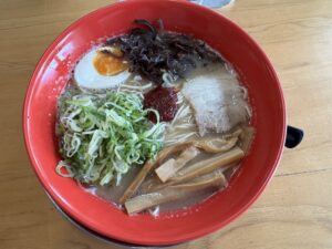 豚骨ラーメンはなかなかあっさりしてシンプル。朝からラーメンはさすがに杵築いかなぁと思いきや、食べやす豚骨なのでするするイケますね。中華そばも見た目は濃いですがこれもあっさり食べられる!