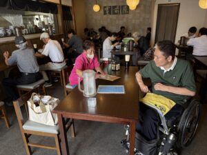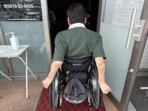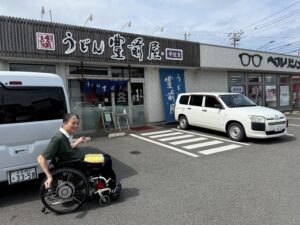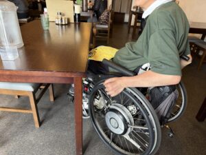 入口に段差もなく店内も広め。大きめの車いすでも問題ないでしょう。