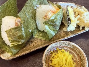 今回はその中で、フルスペックに近い「官べえ火薬」うどん!と天釜うどん!親子丼!ごぼう天うどん!そさて結局食べきれずお持ち帰りした天むすをチョイス♪