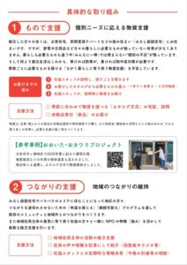 私たちは佐賀関火災で被災した約120世帯へ、「決してひとりではない」という温かい繋がりと、安心して暮らせる毎日を届けるプロジェクトです。私たちは大分市社会福祉協議会と協力し、被災された方が、必要な物資を選べる「カタログ方式」の支援を通して個別のニーズに応え、スタッフが定期的に「お元気ですか」と訪問するつながりを絶やさない仕組みです。