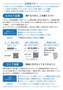 ご支援いただいた方は社会貢献事業として事業報告書、SNS等に掲載させていただきます(匿名希望を除く)
