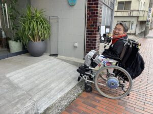 入り口にスロープがあるので車椅子でも入れます。ちょっと傾斜があります