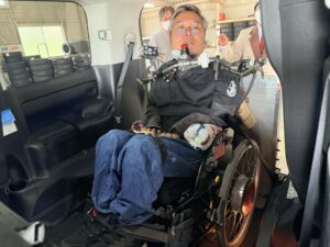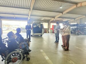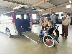 実技では、更なるサービスの向上を意識され、電動車椅子を使用した乗降車の再確認を行いました。皆様が意見を交わしながら熱心に学ばれる姿が印象的でした。