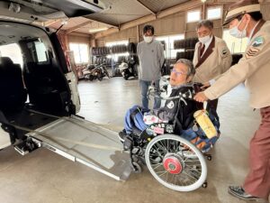 実技では、更なるサービスの向上を意識され、電動車椅子を使用した乗降車の再確認を行いました。皆様が意見を交わしながら熱心に学ばれる姿が印象的でした。