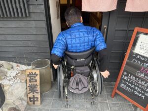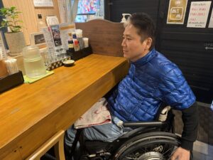 店内は4〜5席ほどのカウンター席と座敷席が二つ。小ぢんまりとしているので複数の車いすでのご利用は厳しいと思います。