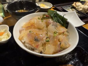 鯛をタレにからめてご飯に盛り、最初はそのまんま、途中からお出汁をかけていただけば、鯛の風味がお口に広がり最高の逸品!