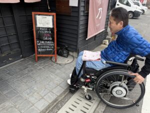 店内は4〜5席ほどのカウンター席と座敷席が二つ。小ぢんまりとしているので複数の車いすでのご利用は厳しいと思います。